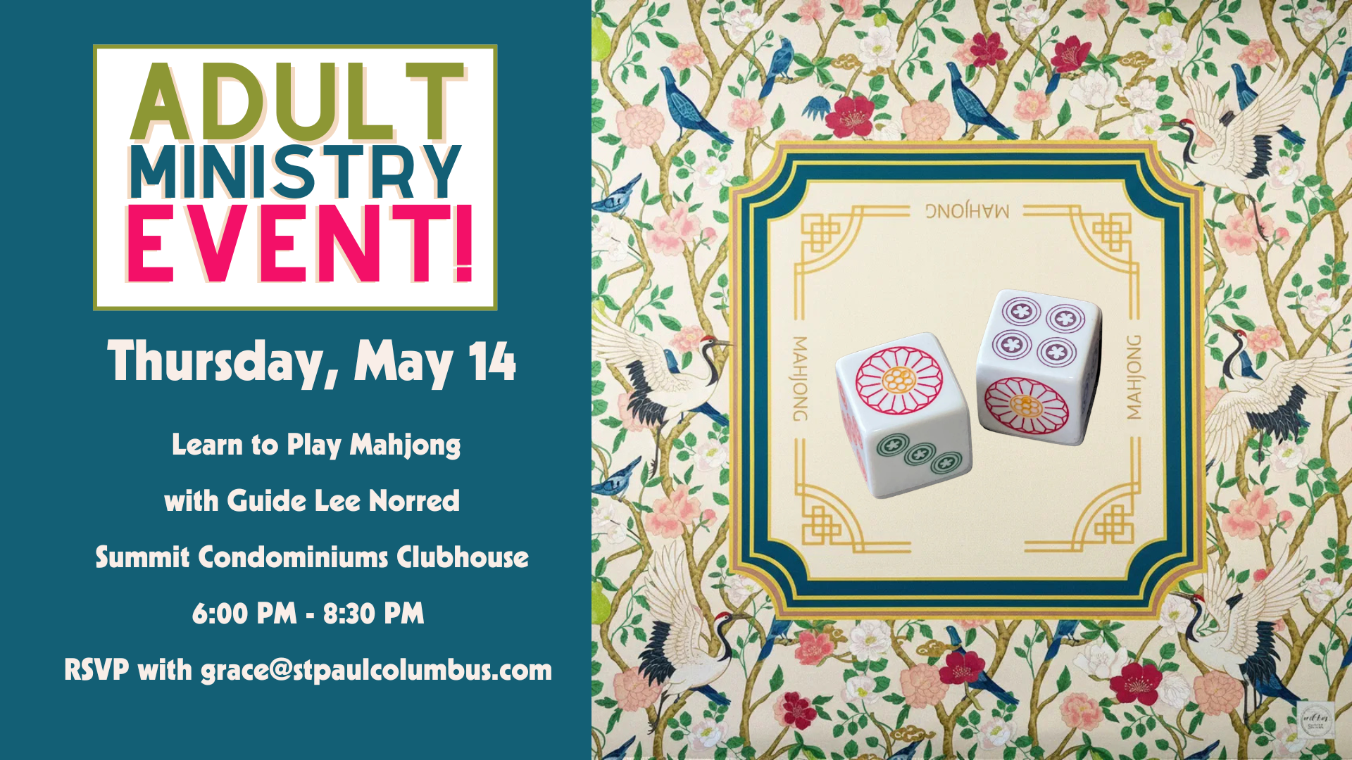 Adult Ministry Event Join us for a fun and relaxed evening as we learn to play Mahjong together. Whether you’ve never played or just need a refresher, this is a great opportunity to try something new, connect with others, and enjoy a night out. Guide Lee Norred will walk us through the basics and help […]